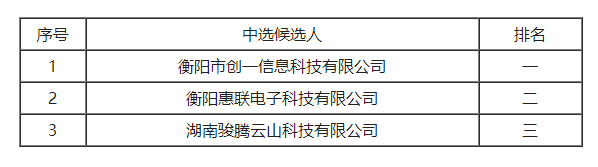 衡糧集團(tuán)OA協(xié)同辦公系統(tǒng)采購(比選編號(hào)BX-013)于2024年8月19日上午9點(diǎn)30分(北京時(shí)間)進(jìn)行了比選活動(dòng)。本項(xiàng)目采用“綜合評(píng)分法”,經(jīng)評(píng)審小組綜合評(píng)審,現(xiàn)將中選候選人排名結(jié)果公示如下: